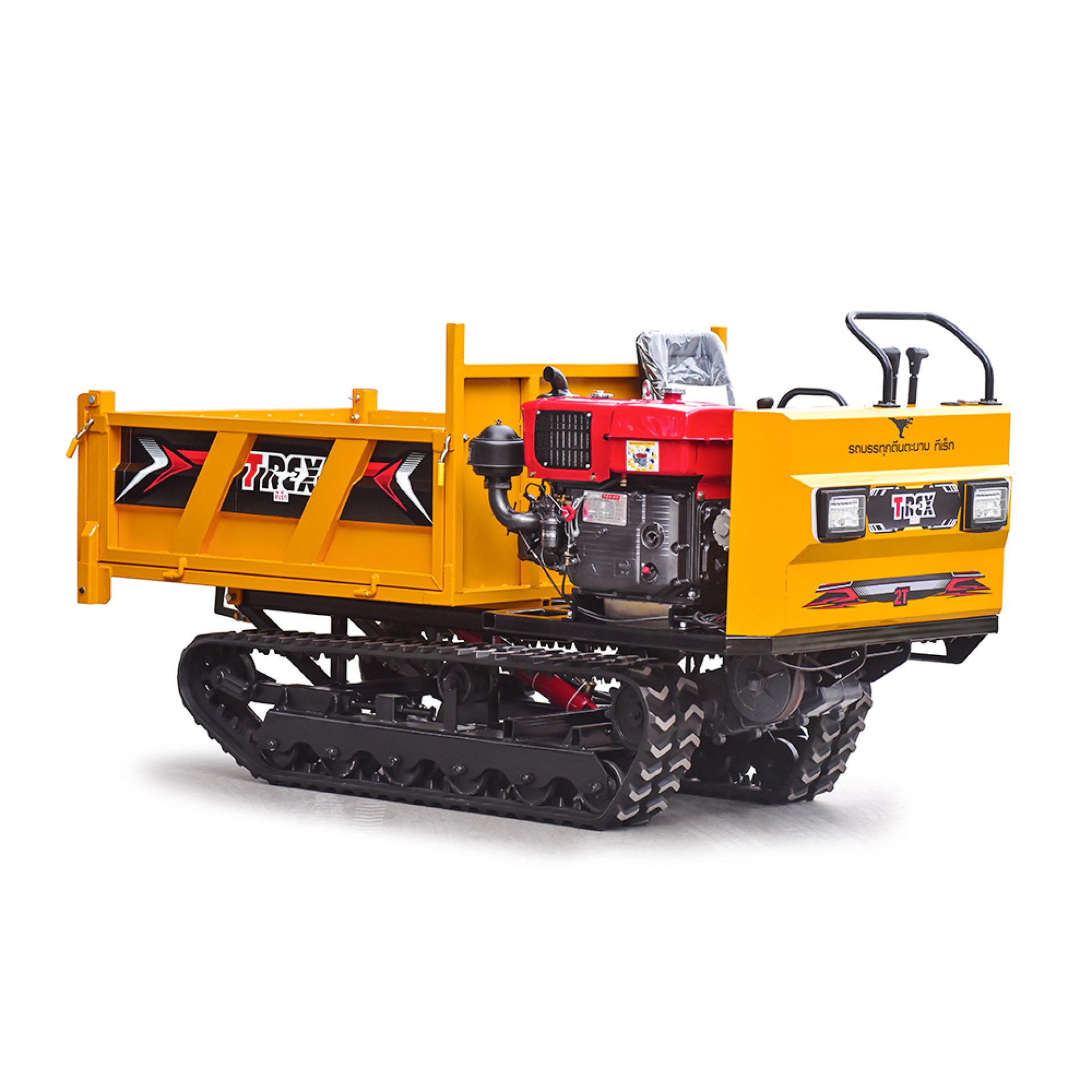 ในส่วนของ รถบรรทุกตีนตะขาบ ทีเร็ก (T-REX) ปัญหาเหล่านี้แทบไม่ใช่อุปสรรคเลย เพราะรถบรรทุกตีนตะขาบ ทีเร็ก ถูกออกแบบมาพร้อมระบบขับเคลื่อนแบบ ตีนตะขาบ ที่ให้การยึดเกาะพื้นได้มั่นคงกว่ารถล้อยางหลายเท่า ช่วยกระจายน้ำหนักตัวรถให้เท่ากัน ทำให้ไม่จมลงในพื้นดินอ่อน และสามารถเคลื่อนที่ได้อย่างมั่นใจแม้ในสภาพทางที่ยากลำบากที่สุด รถบรรทุกตีนตะขาบ ทีเร็ก ขับได้ทุกสภาพพื้นผิว ไม่ว่าจะเป็นดินเละหลังฝนตก ทางโคลนในไร่ หรือพื้นที่ลาดชันในไซต์งาน ก็สามารถบรรทุกวัสดุหนักได้อย่างมั่นคงและต่อเนื่อง ด้วยดีไซน์ที่แข็งแรง เครื่องยนต์ดีเซลกำลังสูง ระบบไฮดรอลิกที่ทรงพลัง และกระบะดั้มที่สามารถเทวัสดุได้สะดวก ทีเร็ก จึงตอบโจทย์การใช้งานในพื้นที่ทุรกันดารได้อย่างครบเครื่อง เหมาะกับผู้ที่ต้องการ รถที่ลุยได้ทุกทาง ทำงานได้ทุกวัน แม้ฝนตก อย่างแท้จริง